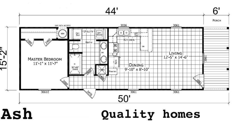The Ash 1bed 1bath size: 667sqft Price: 25,000 Down: 3500 Monthly payments: $406 (5yrs)60months This is a Single section home Comes With double the living area , large kitchen with plenty of space for a dining table.
