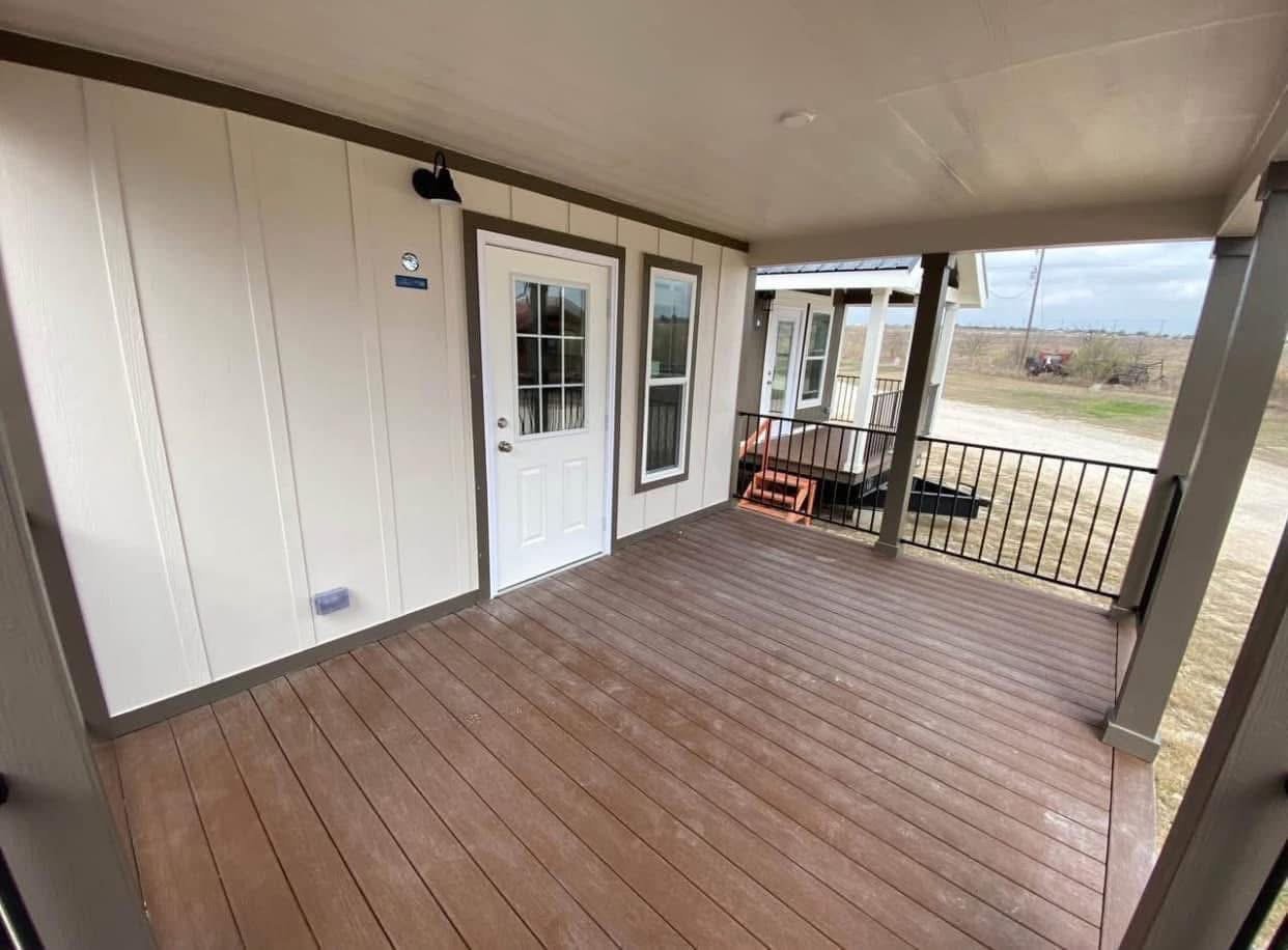 β’The home features a 10-foot covered Trex decking porch, perfect for outdoor relaxation and entertaining.